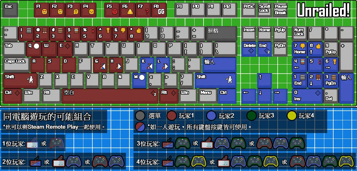 | • | : | 1P: () | 2P:Num0 Delete (Num1~8) () | |